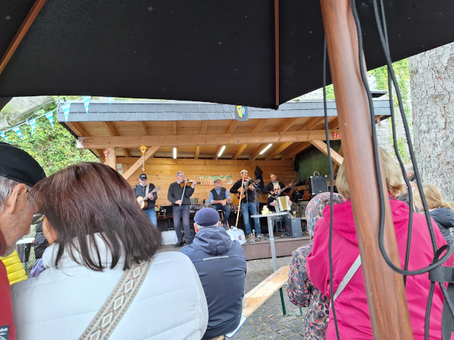 Wir besuchen gerne Konzerte von lokalen Künstlern, wie hier die Stolberger Altstadt Musikanten im Jahr 2025 am Burghaus. |